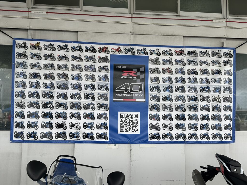 おそらく全年式・全排気量のGSX-Rが印刷されたタペストリーが掲げられていました。